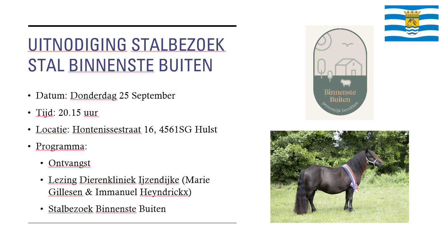 Op donderdag 25 september wordt er een stalbezoek bij Stal Binnenste Buiten georganiseerd. Ook zal er een lezing plaatsvinden. In de flyer hieronder is meer informatie te vinden. Deze dag is voor iedereen toegankelijk!